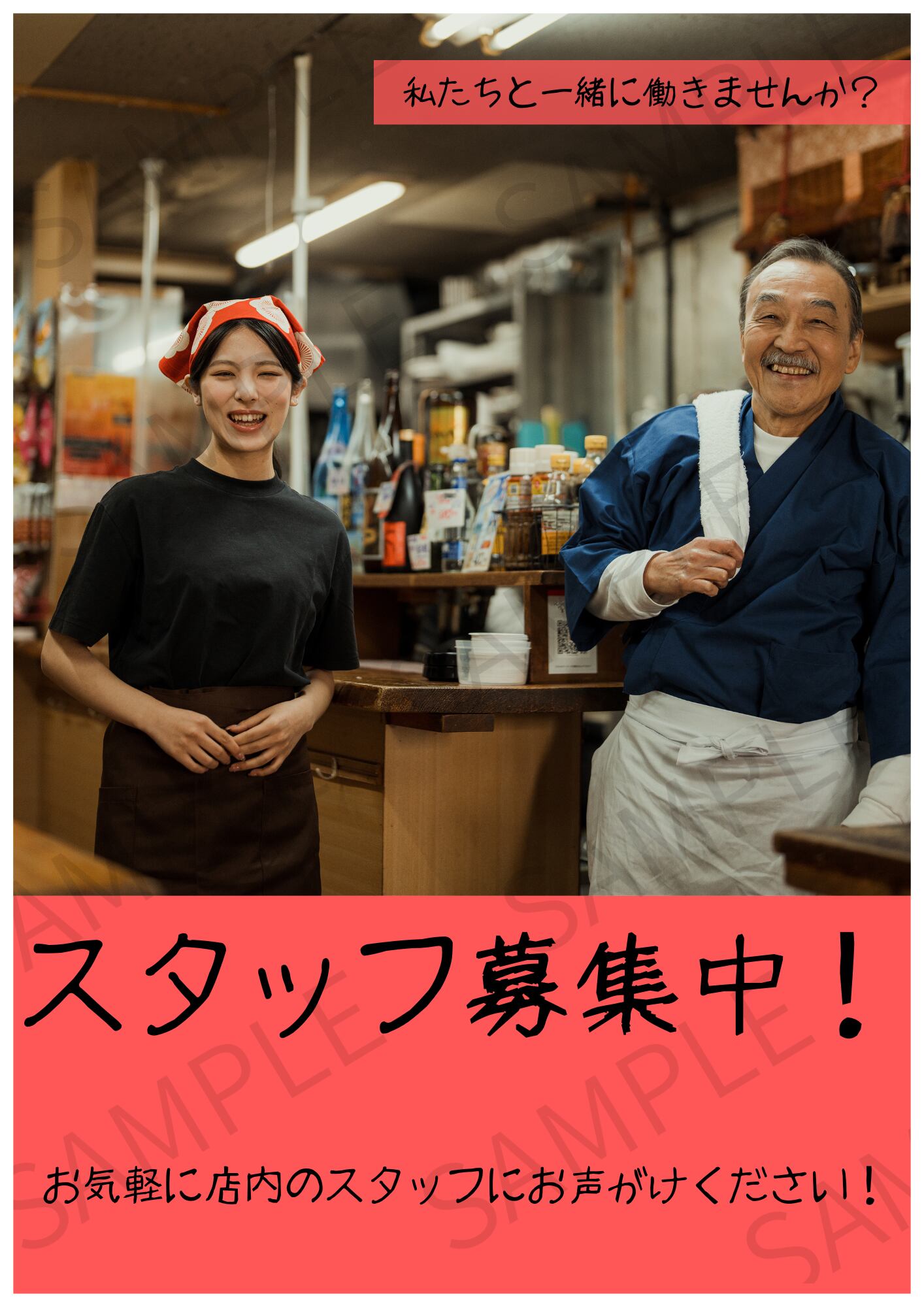 【A4ポスター用】スタッフ募集画像 デザイン4(レッド)