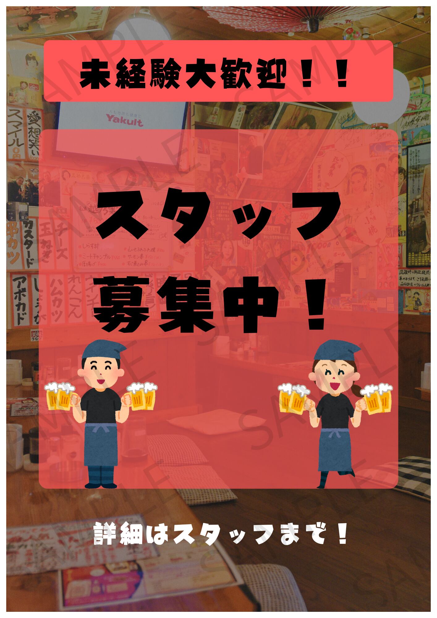 【A4ポスター用】スタッフ募集画像 デザイン5(レッド)