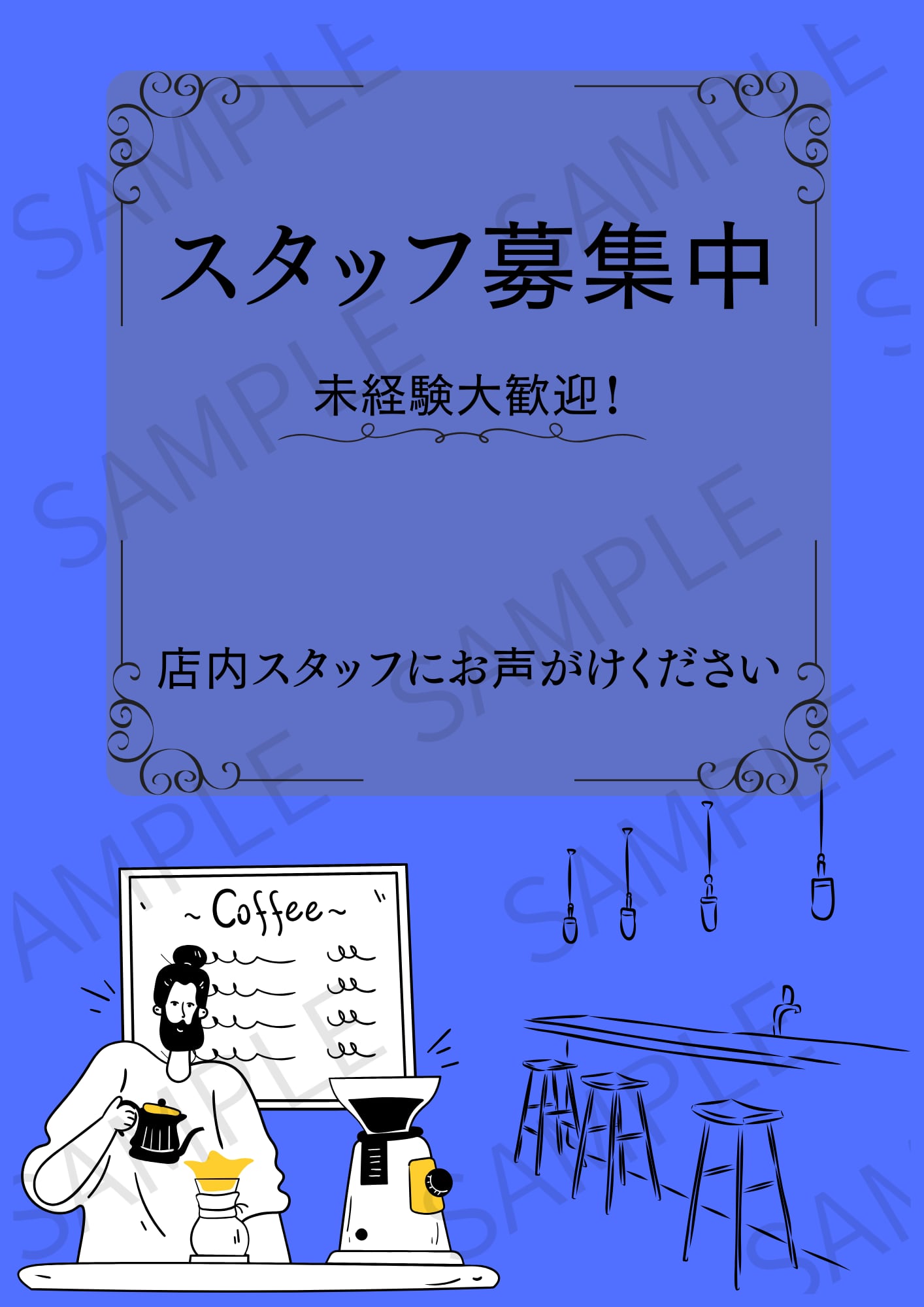 【A4ポスター用】スタッフ募集画像 デザイン9(ブルー)