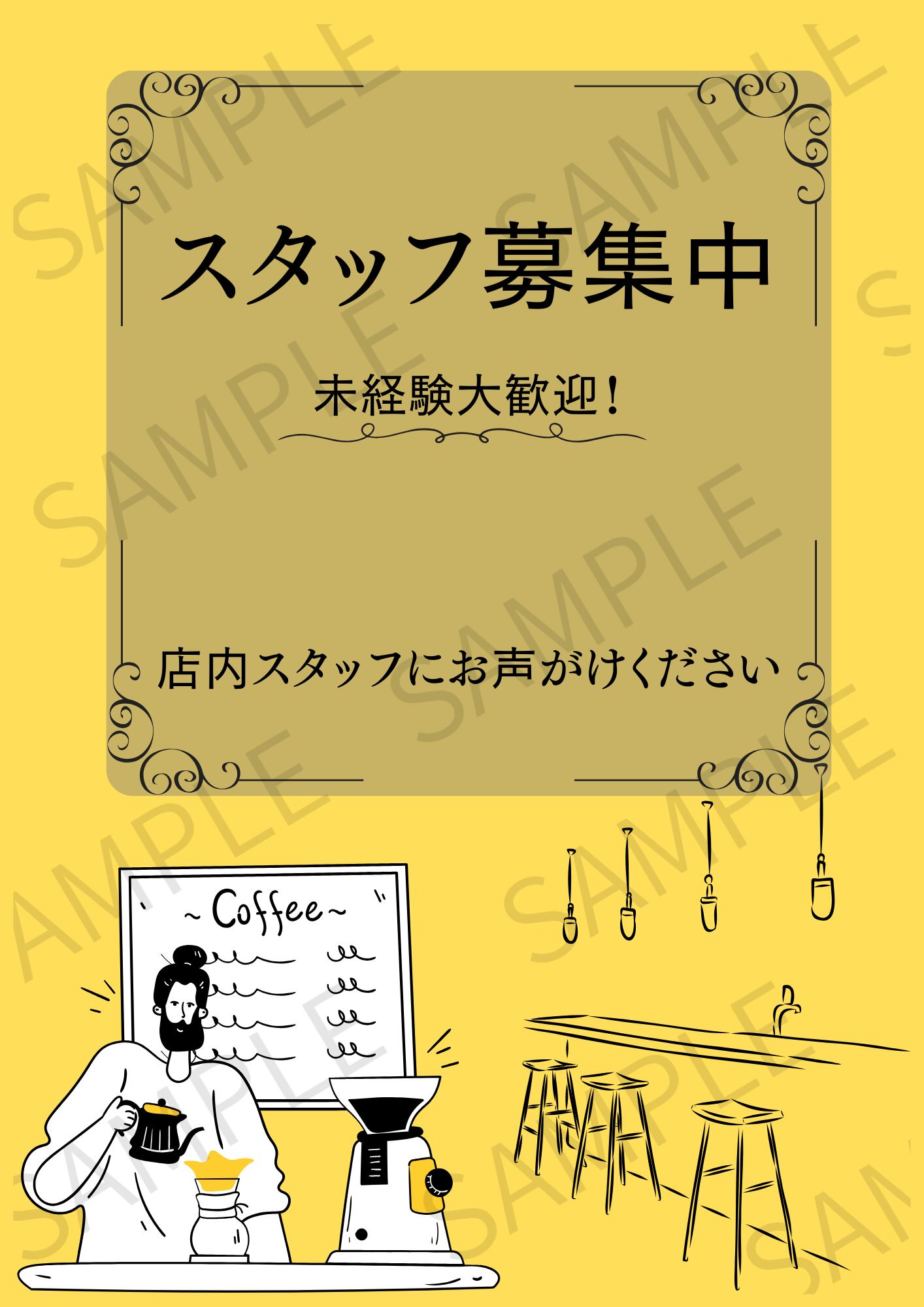 【A4ポスター用】スタッフ募集画像 デザイン9(イエロー)