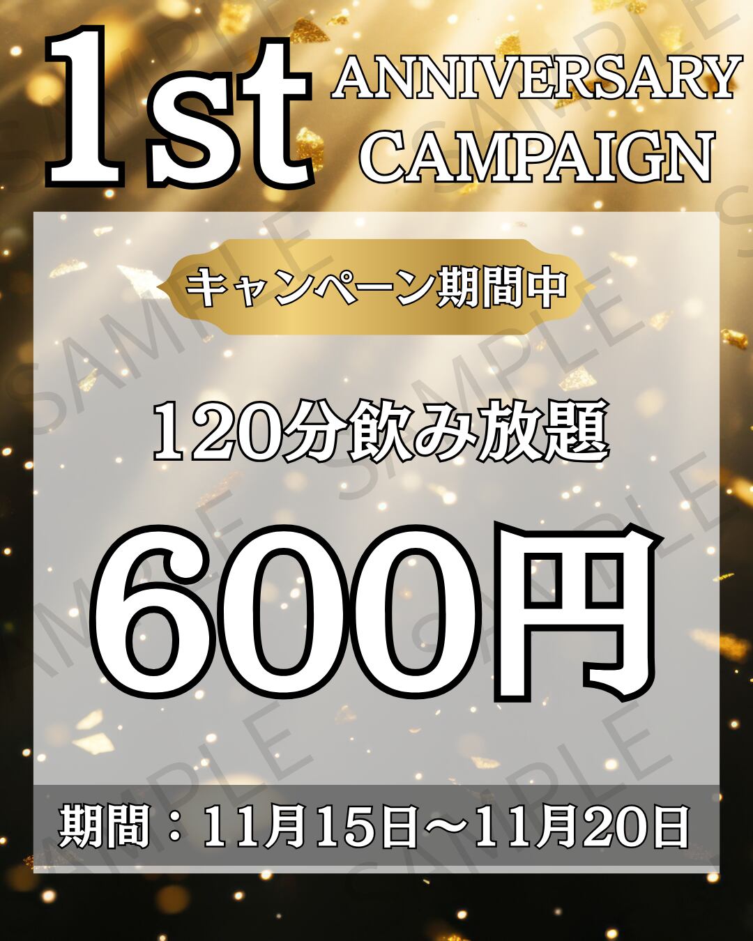 周年記念・期間イベントなどの販促に使いやすく、数字や日付を差し替えるだけで幅広くご利用いただけます。