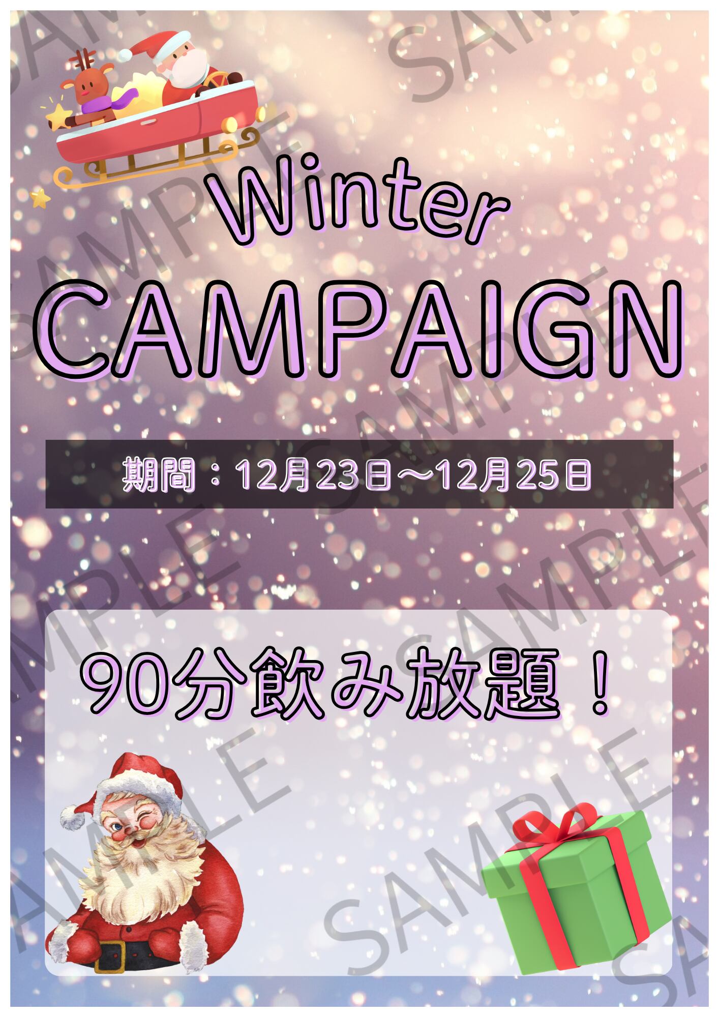 飲食店でご利用いただける「期間限定キャンペーン告知」用のA4ポスターサイズの画像です。