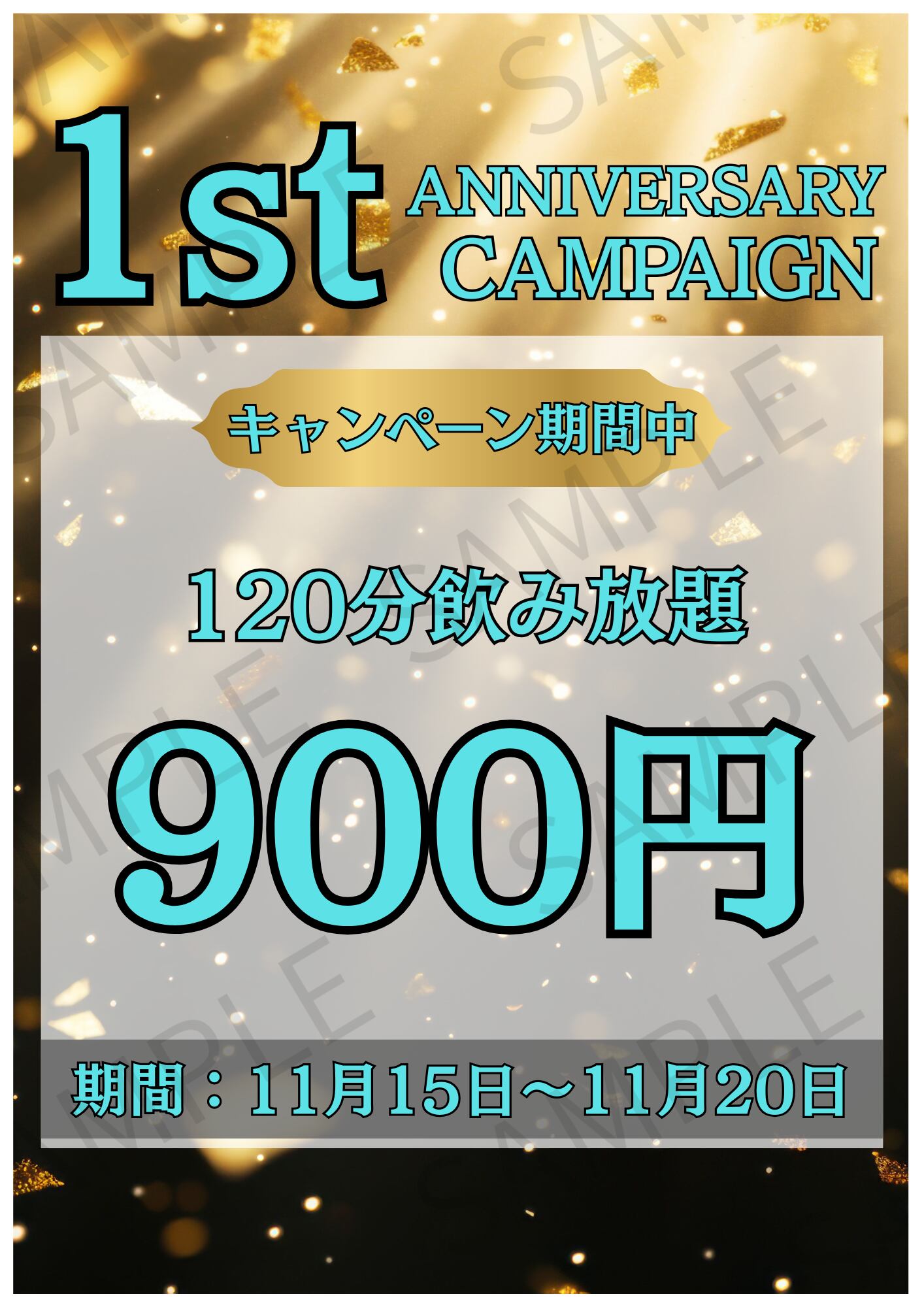 【A4ポスター用】期間限定キャンペーンのお知らせ画像 デザイン2(ライトブルー)