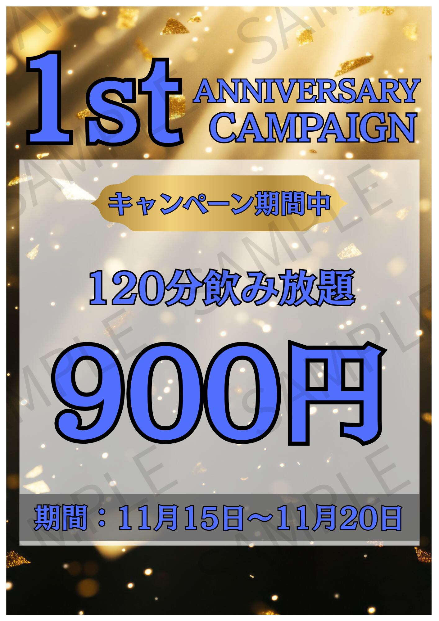 【A4ポスター用】期間限定キャンペーンのお知らせ画像 デザイン2(ブルー)