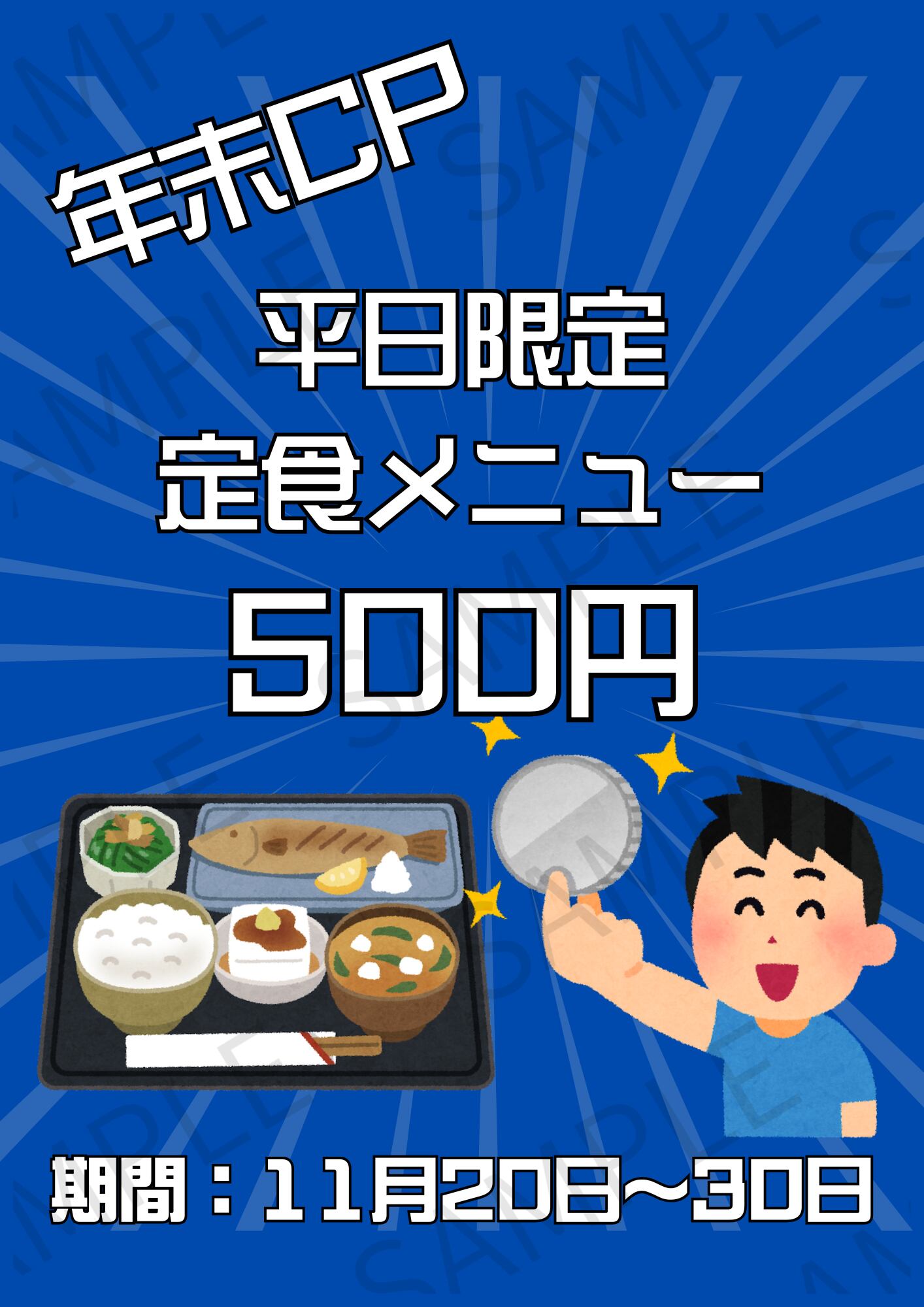 飲食店でご利用いただける「期間限定キャンペーン告知」用のA4ポスターサイズの画像です。