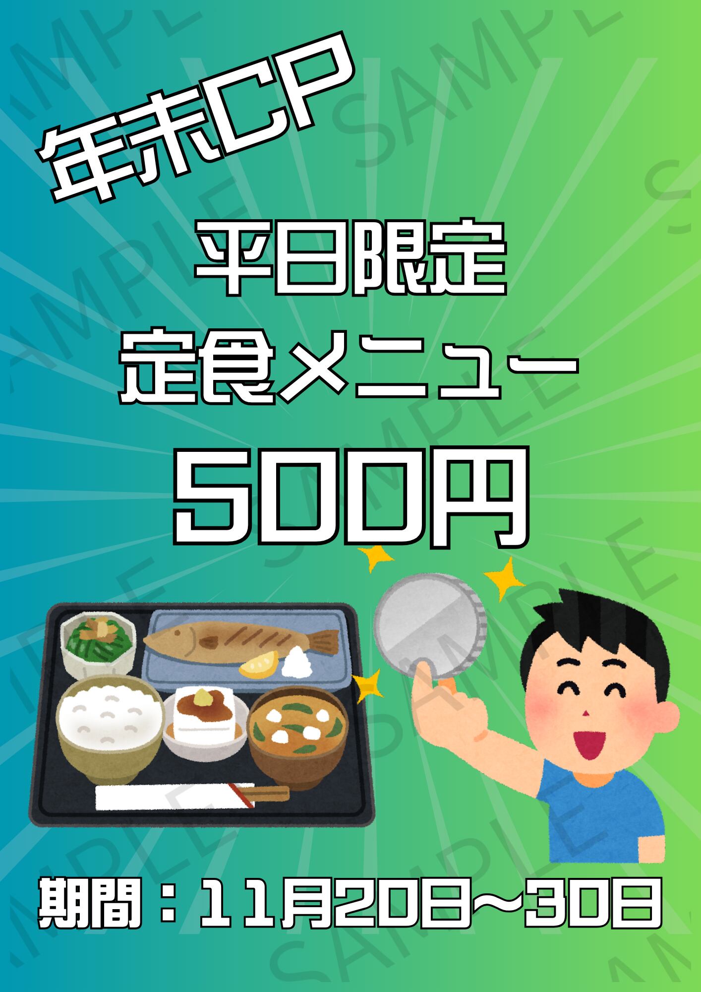 飲食店でご利用いただける「期間限定キャンペーン告知」用のA4ポスターサイズの画像です。