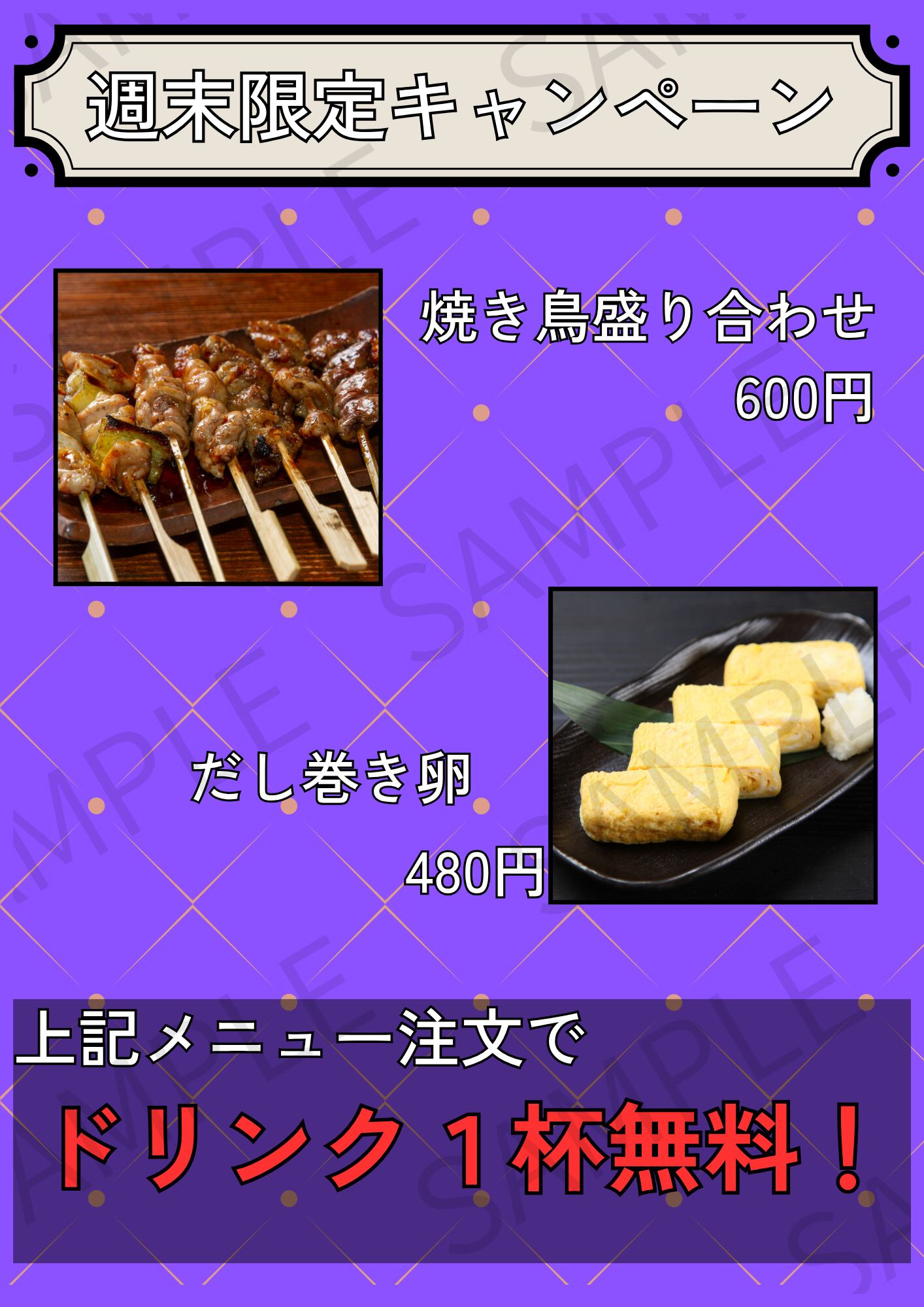 飲食店でご利用いただける「期間限定キャンペーン告知」用のA4ポスターサイズの画像です。