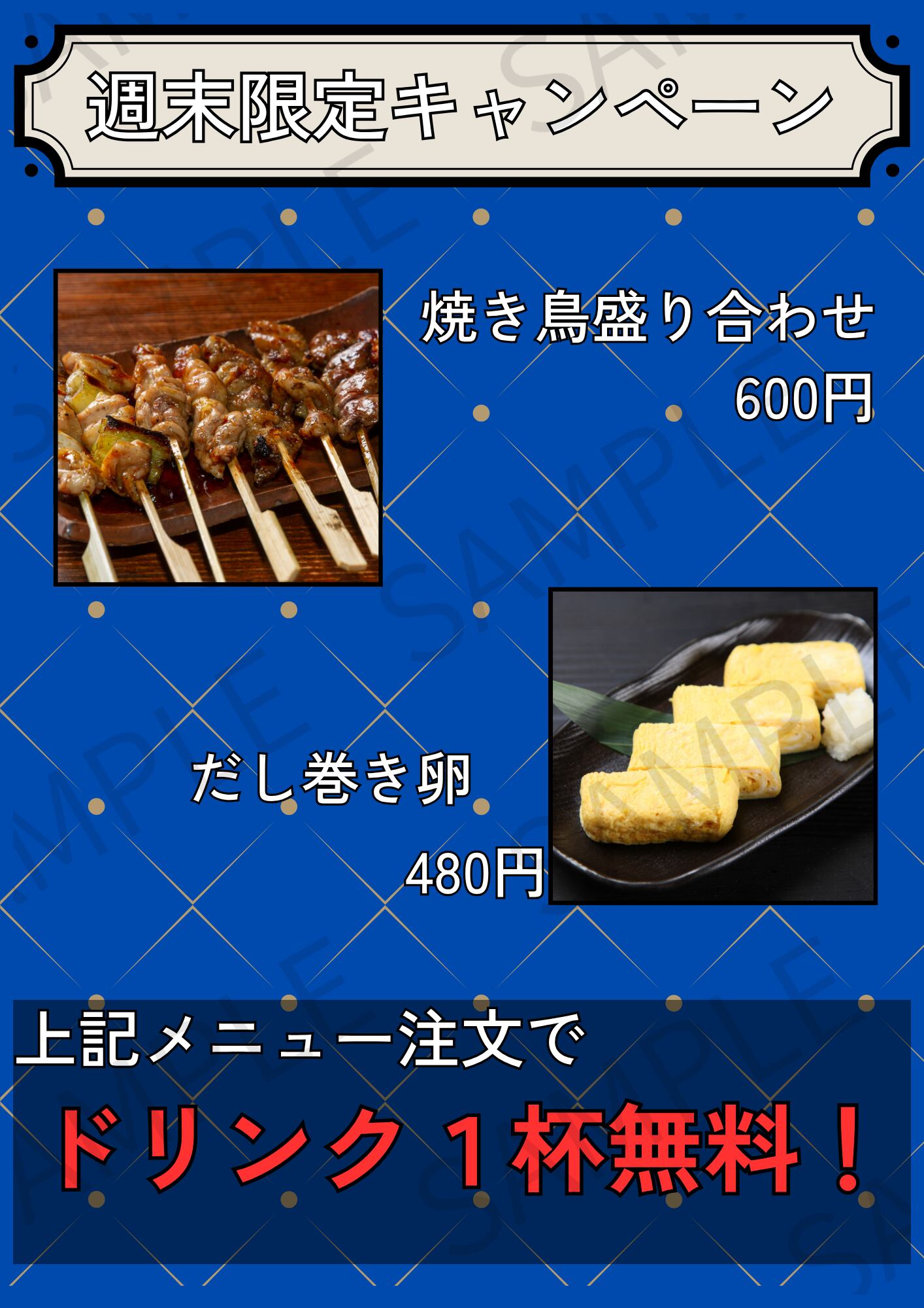 飲食店でご利用いただける「期間限定キャンペーン告知」用のA4ポスターサイズの画像です。